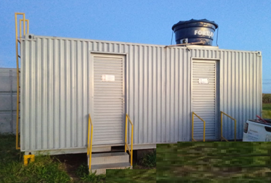 - Container Dormitório: adaptado para alojamentos temporários, com ventilação, isolamento térmico e possibilidade de climatização.